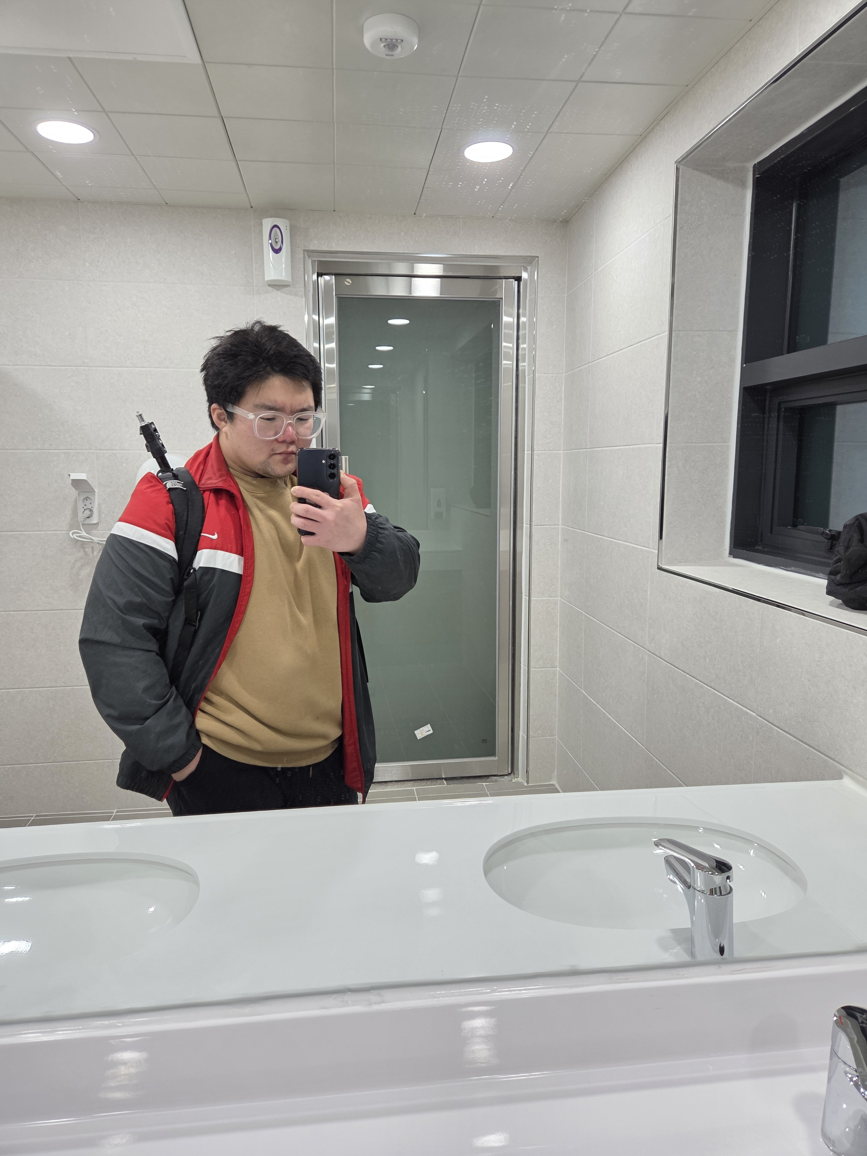 a man standing in front of a mirror posing for the camera