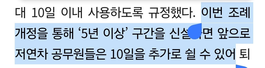½ÇÁ¦ÇѰÍ) ±Ù¼Ó 10³â ´ÜÀ§·Î 10ÀÏ ÈÞÁ÷ ÁÖ´Â°É "5³âÂ÷" ±¸°£ ½Å¼³, Àú¿¬Â÷¶§µµ 10ÀÏ ½¯ ¼ö ÀÖ°Ô²û ÇÑ´ä´Ï´Ù.....