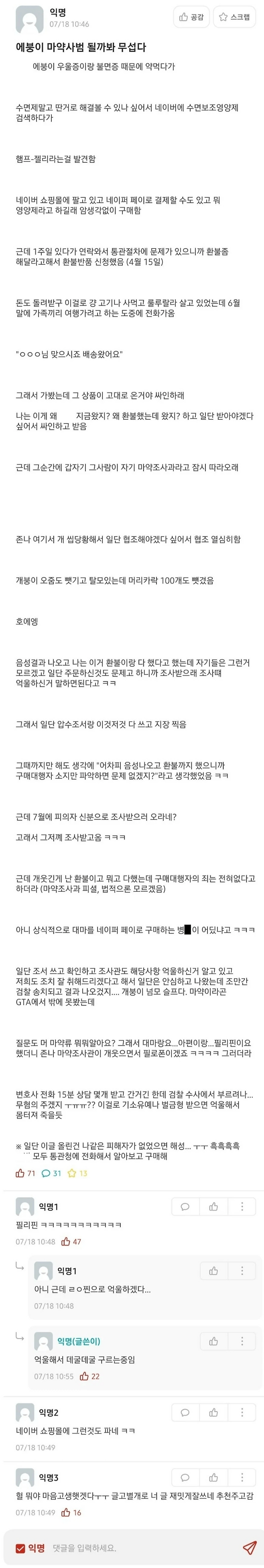 ³×À̹öÆäÀÌ·Î ¹è¼Û´ëÇà ÁÖ¹®Çß´Ù Åë°ü¿¡¼ °É¸°°ÅÀÓ. ÆÇ¸ÅÀÚ(ÇØ´ç ±¹°¡¿¡¼ ¿¡µðºí ÇÕ¹ýÀ̶ó´Â °¡Á¤ ÇÏ¿¡), ¹è´ëÁö´Â ´ç¿¬È÷ ¹ýÀû Ã¥ÀÓ ¾ø°í Á¶»ç°üÀº ÀÚ±â ÀÏ Á¦´ë·Î ÇÑ °Å.