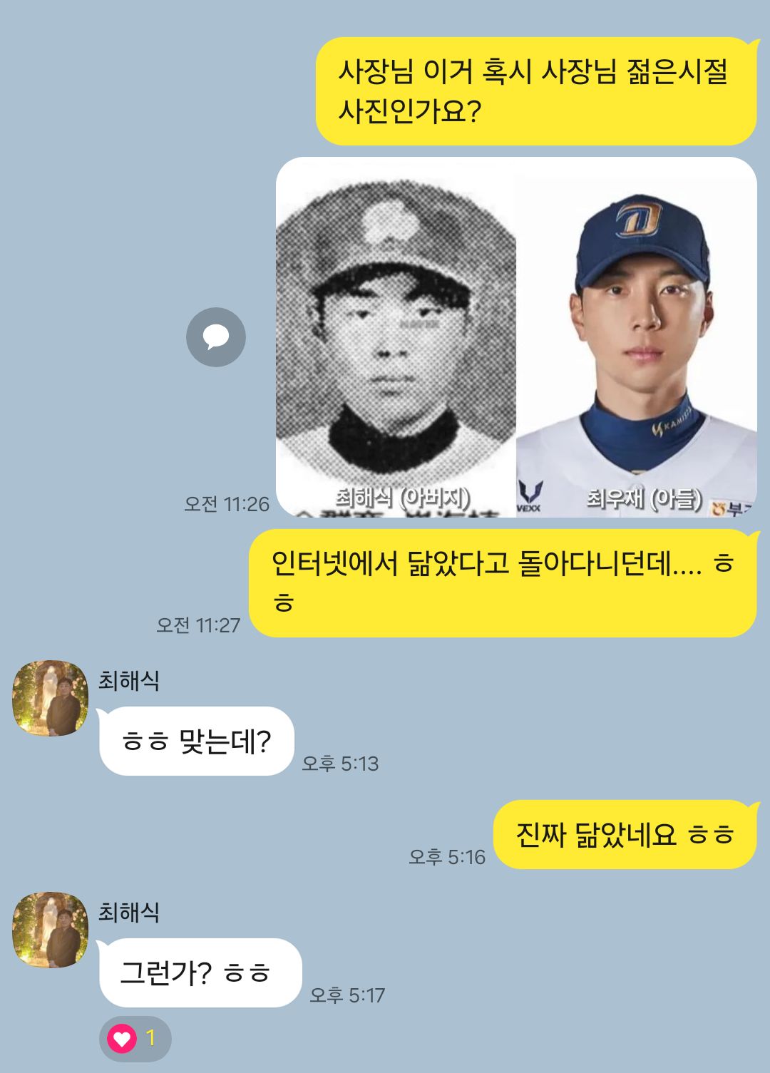 ¾ß±¸¼±¼ö ¾ó±¼ ºñ±³ »çÁøÀ» º» ¼±¼ö º»ÀÎÀÇ ¹ÝÀÀ.jpg