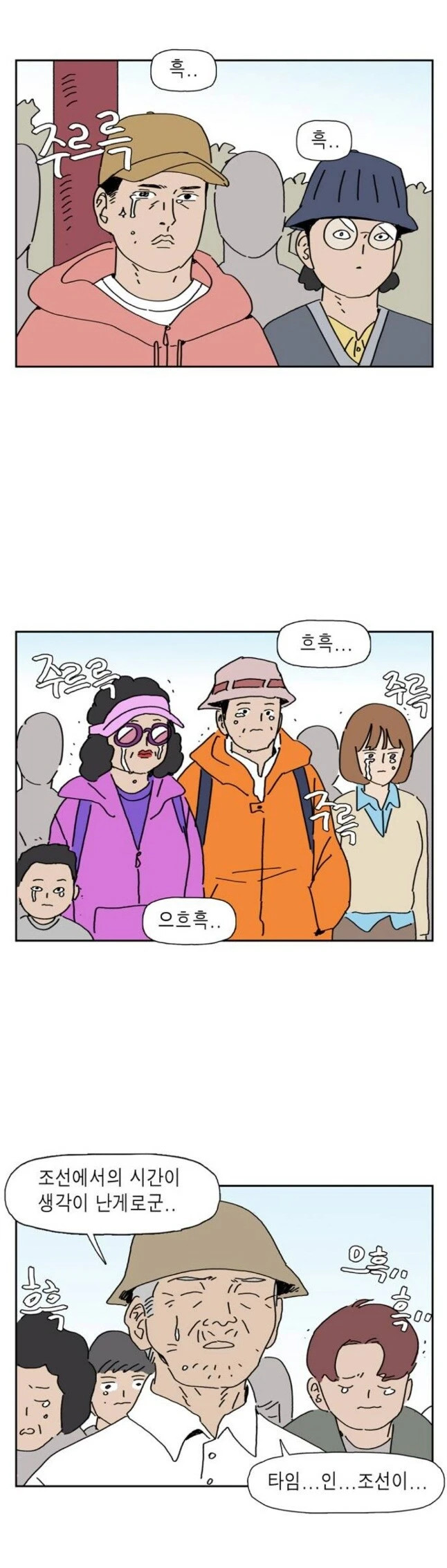 ¿ì´Â »ç¶÷µé Áß º£ÀÌÁö»ö ¾ß±¸¸ð ¾´ »ç¶÷Àº ŸÀÓÀÎÁ¶¼±(ÀÌÇÏ Å¸Á¶)¿¡¼ ÁÖ¸·¿¡¼ ½Ä»çÇÏ´ø °³¶ËÀÌ·Î ³ª¿Ô°í, ±× ¿·¿¡ º¡°ÅÁö ¾´ ³²Àڴ ŸÁ¶¿¡¼ À̹æÀ¸·Î ³ª¿ÔÀ½.±× ¾Æ·¡ÄÆ ¿ÞÂÊ ²¿¸ÍÀ̴ õÀÚ¹®À» ¸ø ¿Ü¿ö¼ ȸÃʸ®¸Â´ø ²¿¸ÍÀÌ°í ±× ¿· ¾ÆÁÖ¸Ó´Ï¿Í ¾ÆÀú¾¾´Â ±Ý¼úÁÁÀº ÁßÀÎ ºÎºÎ·Î ³ª¿ÔÀ½. ±× ¿· ¿©Àڴ ŸÁ¶¿¡¼ À¯¿¡ÇÁ¿À°¡ ¸· ¶³¾îÁ³À» ¶§ »ç¶÷À¸·Î µÐ°©ÇÑ ±¸¹ÌÈ£¿´°í ¾Æ·¡ÄÆ¿¡ ÇҾƹöÁö´Â ¿µÀÇÁ¤À¸·Î ³ª¿ÔÀ½. ¿Ö ³ª¸¸ ¸ð¸£´Â °Çµ¥ ÇÏ´Â ³²ÀÚ´Â ÁÖÀΰøÀÌ Á¶¼±À» ¶°³ª°í 10³â ÈÄ ÅÂ¾î³ ¾Æ±â¶ó Àß ¸ð¸£´Â °ÍÀÓ ¤·¤·
