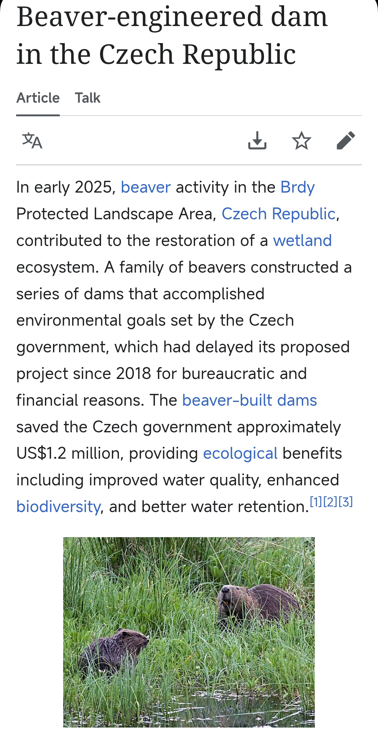 * Ãâó : https://en.wikipedia.org/wiki/Beaver-engineered_dam_in_the_Czech_Republic