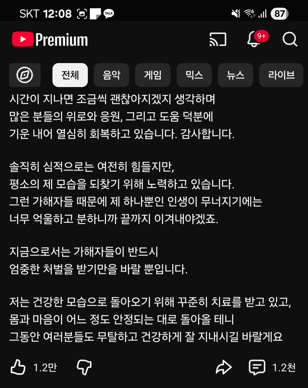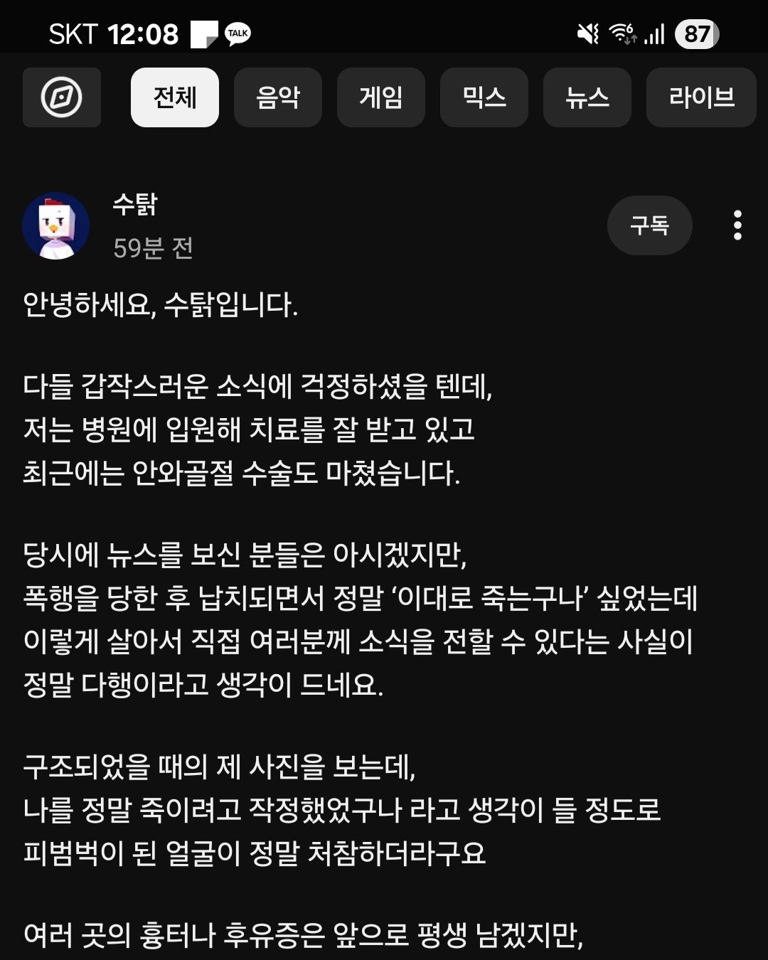 ´ÙÇàÈ÷ ȸº¹ÁßÀΰ¡ º¸³×¿ä