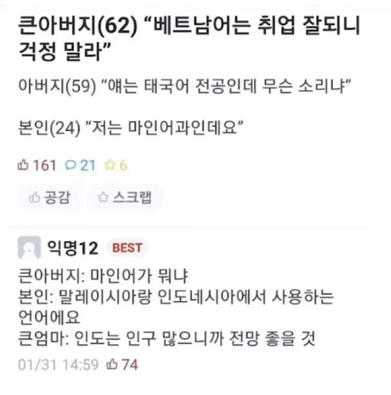 Å«¾Æ¹öÁö "º£Æ®³²¾î´Â ÃëÁ÷ Àß µÉ°Å¾ß °ÆÁ¤¸¶¶ó"