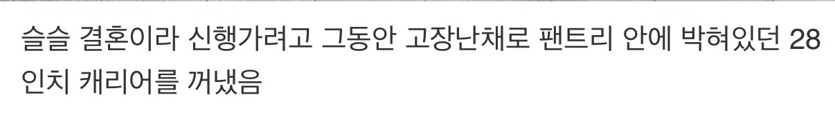½½½½ °áÈ¥À̶ó ½ÅÇà°¡·Á°í ±×µ¿¾È °íÀå³Ã¤·Î ÆÒÆ®¸® ¾È¿¡ ¹ÚÇôÀÖ´ø 28ÀÎÄ¡ ij¸®¾î¸¦ ²¨³ÂÀ½