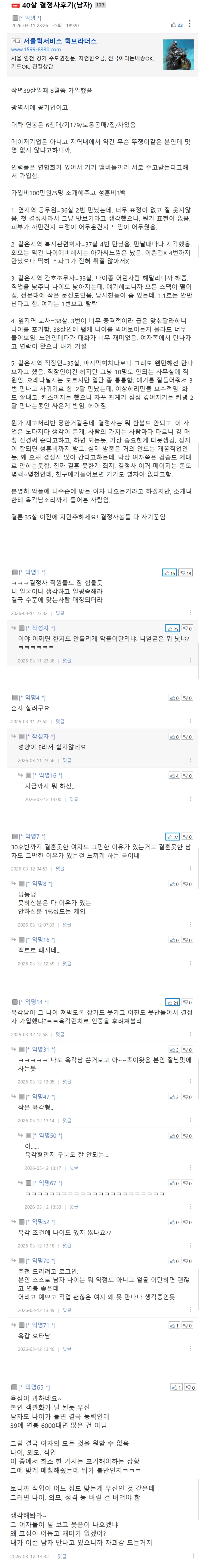 ½ºÆå ¿Ü¸ð ¼º°Ý ÃæºÐÇѵ¥ 40»ì±îÁö ¹ÌÈ¥ÀÌ¸é ¾îµò°¡ ¹®Á¦°¡ ÀÖÀ½ ¿Ö³Ä¸é º»ÀÎÀÌ ¾ÈÇÏ·Á°í ÇØµµ 40»ì µÇ±â Àü¿¡ ´©±º°¡ ä¾î°¨ º»ÀÎÀÌ 40´ë°¡ µÇ¾î°¡´Âµ¥µµ ¹ÌÈ¥À̶ó¸é ¾ÈÇÏ´Â°Ô ¾Æ´Ï¶ó ¸øÇϴ°Ŷó »ý°¢ÇؾßÇÔ