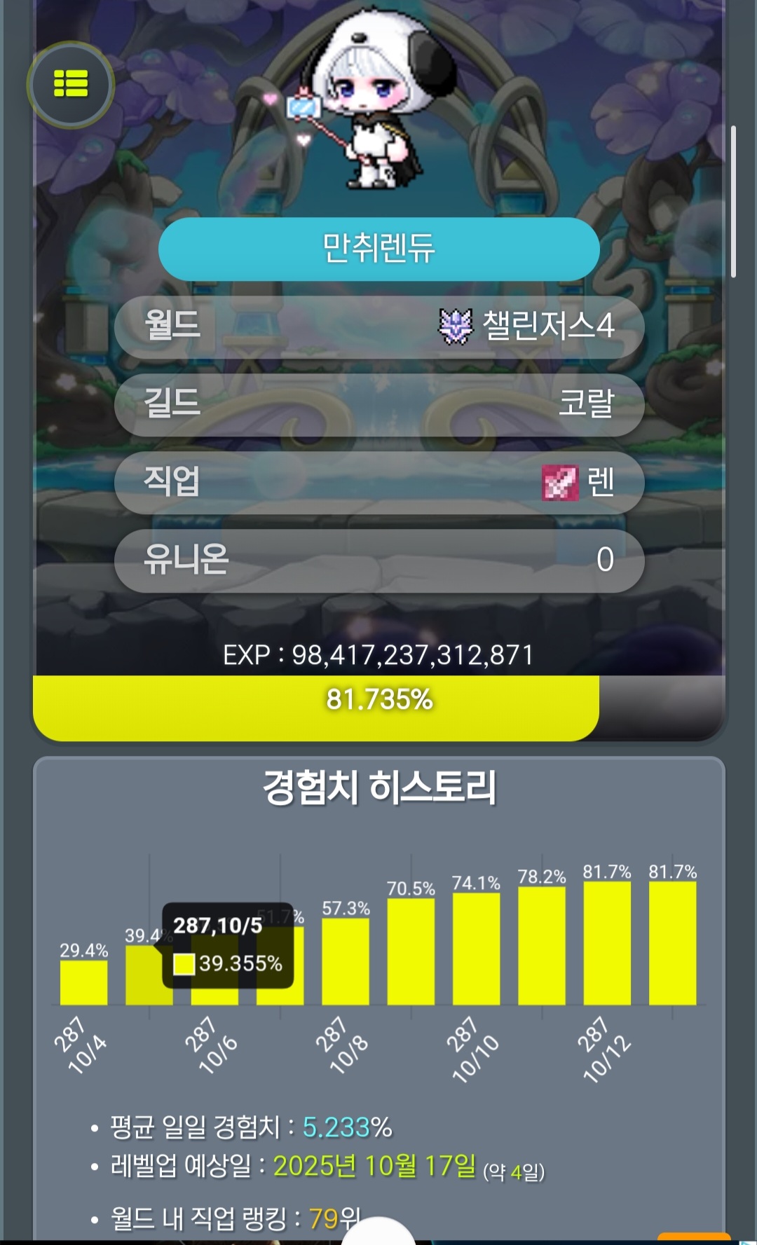+ç4¼· °æÇèÄ¡ ·©Å· in100Àº ¼º°ø ÇöÀç 96µî