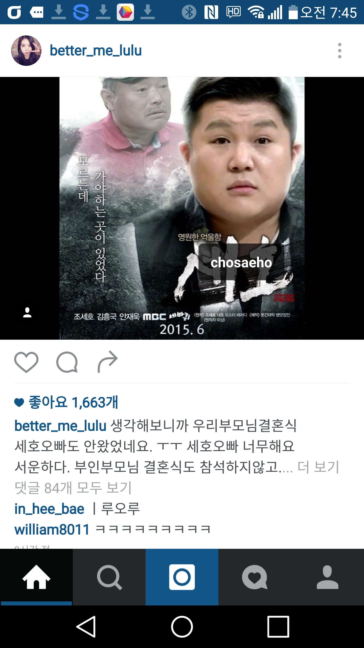 Á¶¼¼È£ ÀνºÅ¸¿¡ ´ñ±Û³²±ä žç [27]