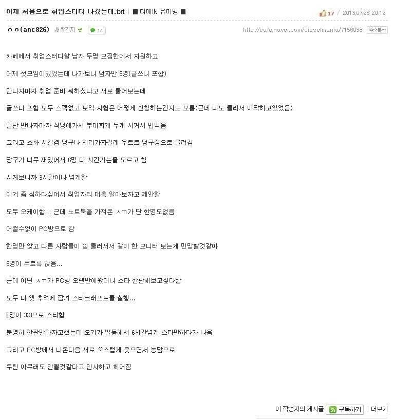 °øºÎÇÒ²¨¸é ±×³É È¥ÀÚ ÇÏ´Â °Ô ³ªÀ½. µ¶¼½Ç ´Ù´Ò¶§ °æÂû°í½Ã ÁغñÇÑ´Ù´Â ¾Öµé 11½Ã¿¡ ¹ÌÀû¹ÌÀû µé¾î¿Í¼ °¡¹æ ³õ°í ³ª¿Í¼ Ä¿ÇǸ¶½Ã¸é¼ ³ë°¡¸®±î´Ù°¡ Á¡½É ¸Ô´Â´Ù°í ³ª°¡¼ Çǹæ±îÁö ǮŸÀÓÀ¸·Î ½¬°í 4½ÃÂë µÇ¸é µé¾î¿À´Âµ¥ ¿ÀÀÚ¸¶ÀÚ ¶Ç Ä¿ÇÇŸÀÓ... µ¶¼½Ç¿¡ Ãâ±ÙµµÀ常 ÂïÁö °øºÎ ÇÏ·ç¿¡ 1½Ã°£À̳ª Àç´ë·Î ÇÏ´ÂÁö ¸ð¸¦ ¾ÖµéÀ̾úÀ½. °øºÎ´Â ±×³É ¸¾Àâ°í È¥ÀÚÇÏ´Â °Ô ´õ ³ªÀ½. ¾î¼³ÇÁ°Ô ¹¶Ä¡¸é ³î¾Æ...