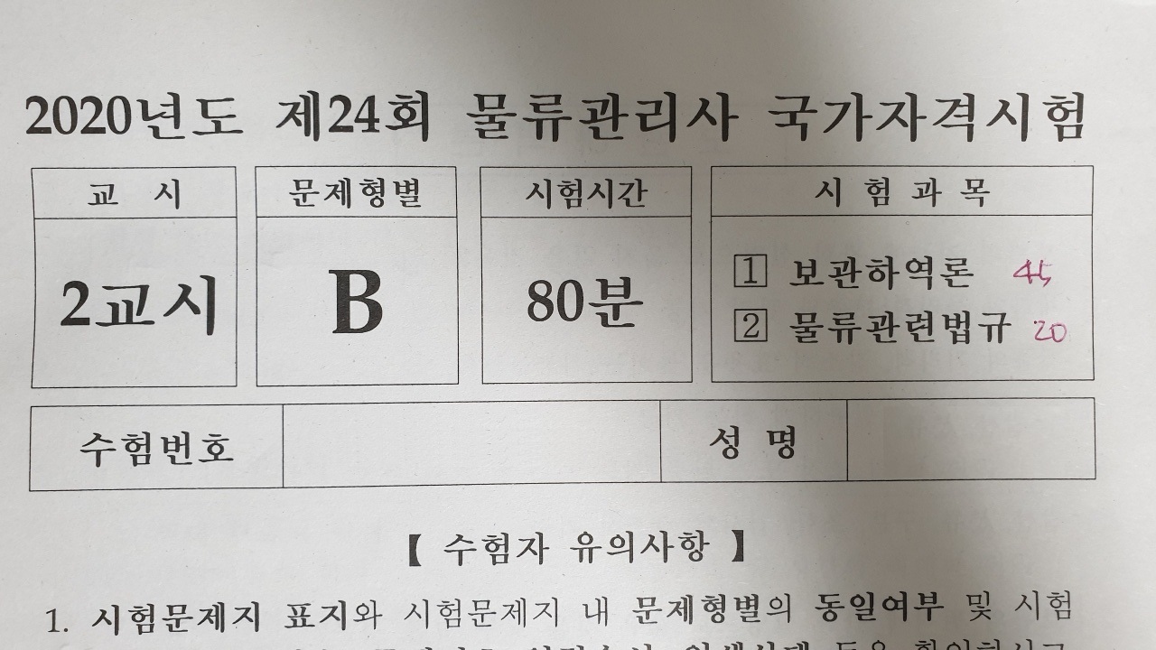 ¿À´Ã ½ÃÇèÄ£ ¹°·ù°ü¸®»ç ¹°·ù°ü·Ã¹ý±Ô ¹«·Á 20Á¡ ¤»¤»¤» °ú¸ñº° Æò±ÕÀº 44Á¡ ¤»¤»¤»