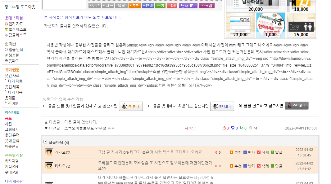 ¾Æ·¡Ã³·³ »çÁøÀÌ html ÅÂ±× ±×´ë·Î ³ª¿À³×¿ä