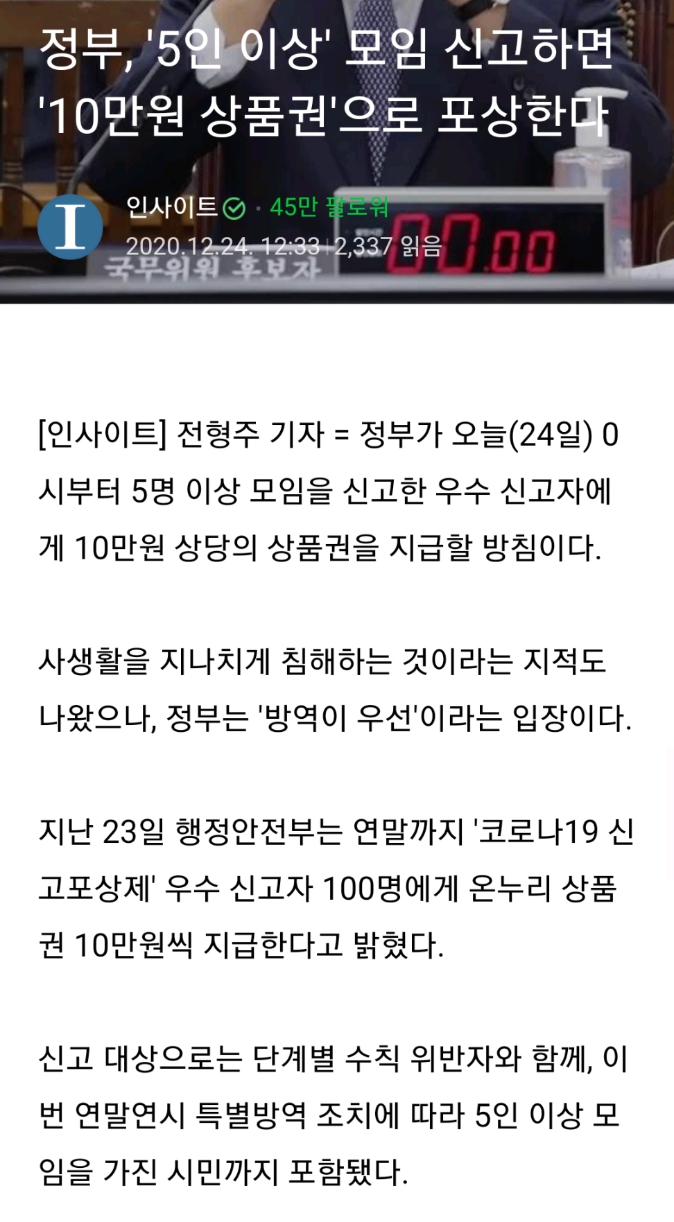 Á¤ºÎ '5ÀÎÀÌ»ó' ¸ðÀÓ ½Å°íÇϸé '10¸¸¿ø »óǰ±Ç'À¸·Î Æ÷»óÇÑ´Ù.news