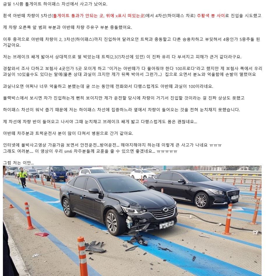 ½ÇÁ¦ »ç°í Â÷ÁÖ°¡ ±Û ¿Ã·È´Âµ¥ º¸Çè»ç¿¡¼ 100:0 ³ª¿Â »ç°ÇÀÌ·¡. ´ÙÇàÀ̱äÇѵ¥. ¾Æ¹Ý¶¼¶û Æ®·°Â÷ÁÖ°¡ Å©°Ô ´ÙÃÆ´ÙÇÔ... Æ®·°Â÷ÁֺР¾ÈŸ±î¿ò..¤Ð¤Ð