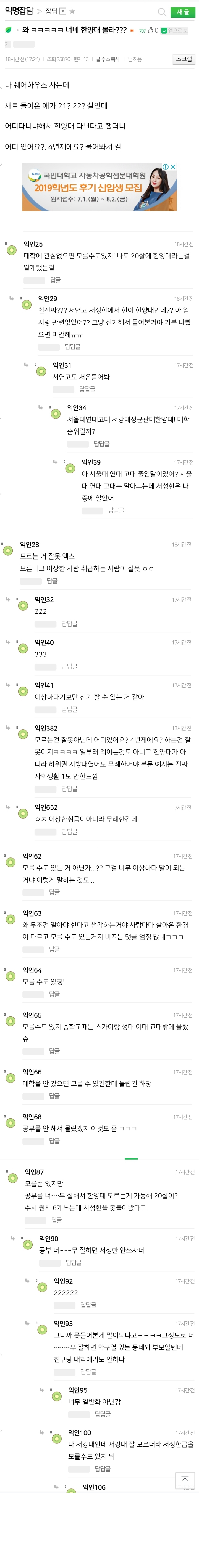½ÇÁ¦·Î ´ëÇÐ ¾È °£ Ä£±¸µéÀº ¼°´ë ¼°æ´ëµµ Àß ±¸ºÐ ¸øÇÔ ¤·¤· ¼°´ë ÃÖ±Ù¿¡ ¿¬°í´ë¶û ÀÔ°á °ãÄ¥ Á¤µµ·Î °øºÎ ÀßÇØ¾ß °¡´Â °÷Àε¥µµ ±×·³ ¤»¤» ±×¸¸Å ½ºÄ«ÀÌ ÀνÄÀÌ ½ë °ÅÁö.. ¼¼ºÇÑ ³ª¿Í¼ ¿Ö ¸ð¸£³Ä°í ¹ß²öÇÒ¸¸ÇÏ´Ù°í ¼ÖÁ÷È÷ »ý°¢Àº µê ÀÚ±âµéµµ ºñ½ÁÇÏ°Ô °øºÎ¿½ÉÈ÷ Ç޴µ¥ Àß ¾È ¾Ë¾ÆÁÖ´Ï±î ºýÄ¥¸¸ÇÏÁö ¹¹