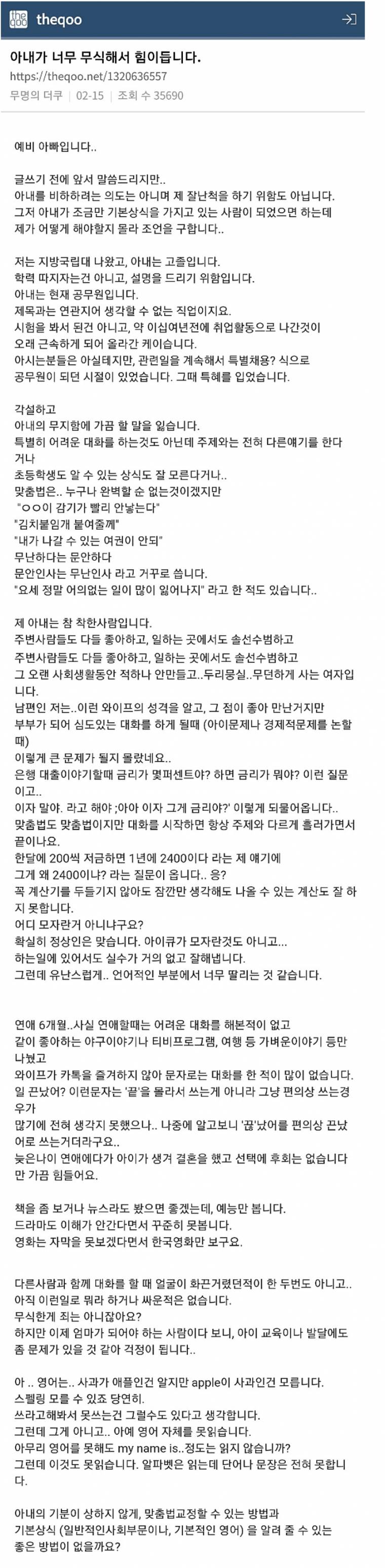 ƯÇý¶óµµ µ¿³× °ø¹«¿øÀ¸·Î ÀÏÇϰí ÀÖ°í, °íÁ¹ÀÌ¸é ¾Æ¹«¸® Çб³ °øºÎ¸¦ ¾ÈÇß´õ¶óµµ °£´ÜÇÑ ±¹¾î ¼öÇÐ »ó½ÄÀº ÀÖÀ»ÅÙµ¥..? ÁÖÀÛÀ̰ųª ¾Æ³»ºÐÀÌ ¾ÆÁÖ °¡º¿î ¼öÁØÀÇ Áö´ÉÀå¾Ö°¡ ÀÖÀ¸½ÅµíÇϳ׿ä. »ì¦ Áö´ÉÀÌ ³·Àº°Ç °¡±î¿î »çÀ̰¡ ¾Æ´Ï¸é ¸ð¸¦Á¤µµ·Î Ƽ°¡ ¾È³´Ù°í ÇÏ´õ¶ó±¸¿ä.