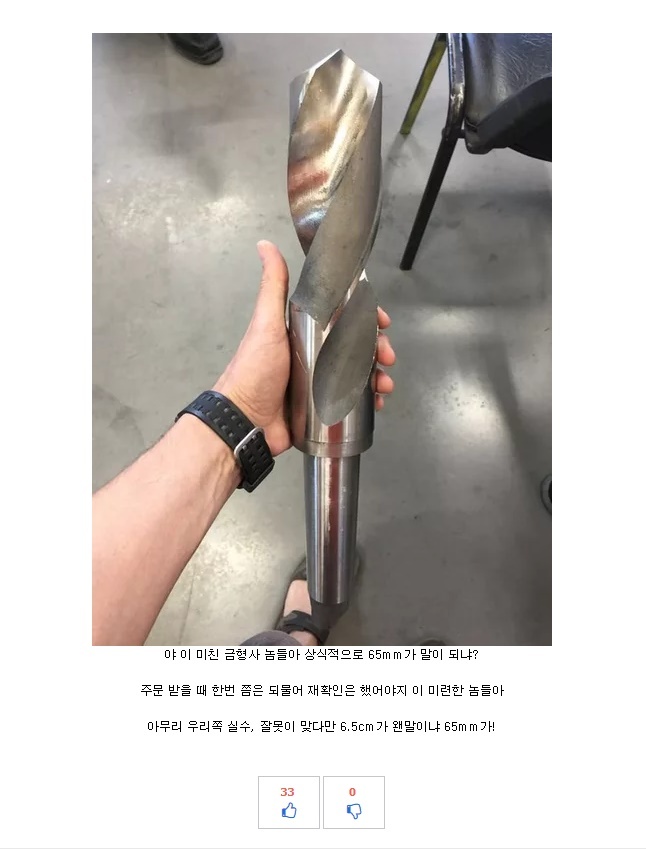 öÆÇ¿¡ ÀÛÀº ±¸¸ÛÀ» ¶Õ´Â µå¸±À» ÁÖ¹® Á¦ÀÛ ½ÃÄ״µ¥ ½Ç¼ö·Î 6.5mm°¡ ¾Æ´Ï¶ó 65mm¸¦ ½ÃÄѹö¸².