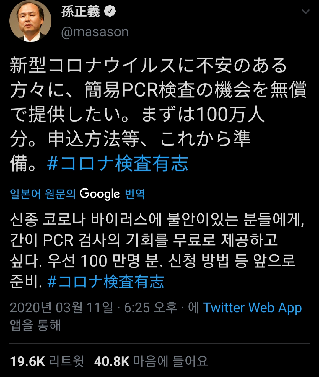 ÀϺ» Åë½Åȸ»ç ¼ÒÇÁÆ®¹ðÅ©ÀÇ ¼ÕÁ¤ÀÇ È¸ÀåÀÌ ÀÚ½ÅÀÌ ±¸¸ÅÇÑ Äڷγª19¸¦ °Ë»çÇÒ ¼ö ÀÖ´Â PCR kit 100¸¸°³¸¦
