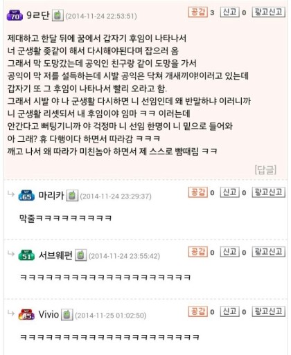 ³ ÀçÀÔ´ë°¡ ¾Æ´Ï¶ó ²Þ¿¡¼± ¾ÆÁ÷µµ ±º»ýȰÁßÀÌ´øµ¥¤»¤»¤» ²Þ¿¡¼ ÈÄÀӾֵ麸¸é ¿À ³Ê Á¸³ª ¿À·£¸¸ÀÌ´Ù ÀÌ·¯¸é¼ ±¦È÷ ¹Ý°©°í ¾Æ ¾ðÁ¦ Àü¿ªÇϳª ¤µ¤² ±º»ýȰ Á¸³ª ±â³× ÀÌ·¯¸é¼ ¼ö±àÇÔ (Á¦´ëÇÑÁö 11³âµÊ)