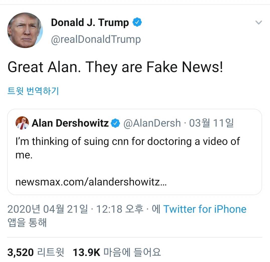 * Ãâó : https://twitter.com/realDonaldTrump/status/1252436473866973185?s=09